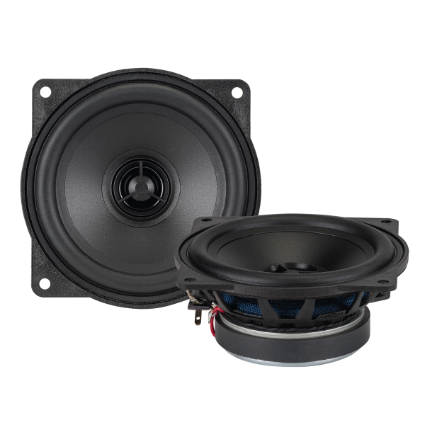 Das neue 10 cm 2-Wege Soundsystem ist als Punktschallquelle konstruiert. Der 13 mm Hochtöner mit ferrofluid-gekühltem Neodymantrieb liegt auf einer Ebene mit der Tieftönermembran und ermöglicht so ein phasengleiches Abstrahlen der jeweiligen Frequenzanteile. Phasenverschiebungen im Übergangsbereich der Frequenzanteile, die bei herkömmlichen herausstehenden Hochtönern entstehen, gehören somit der Vergangenheit an. Das Ergebnis ist eine transparente, klare Musikwiedergabe mit hoher Dynamik.